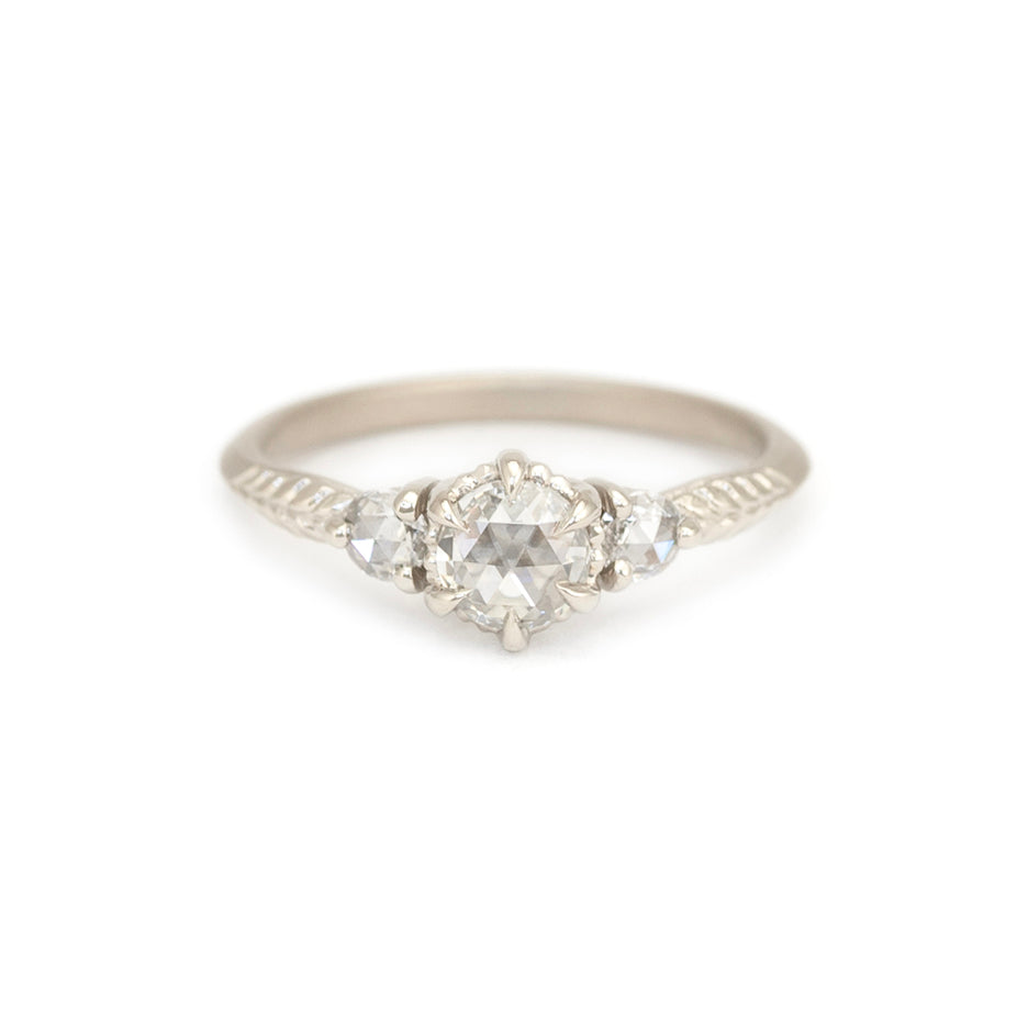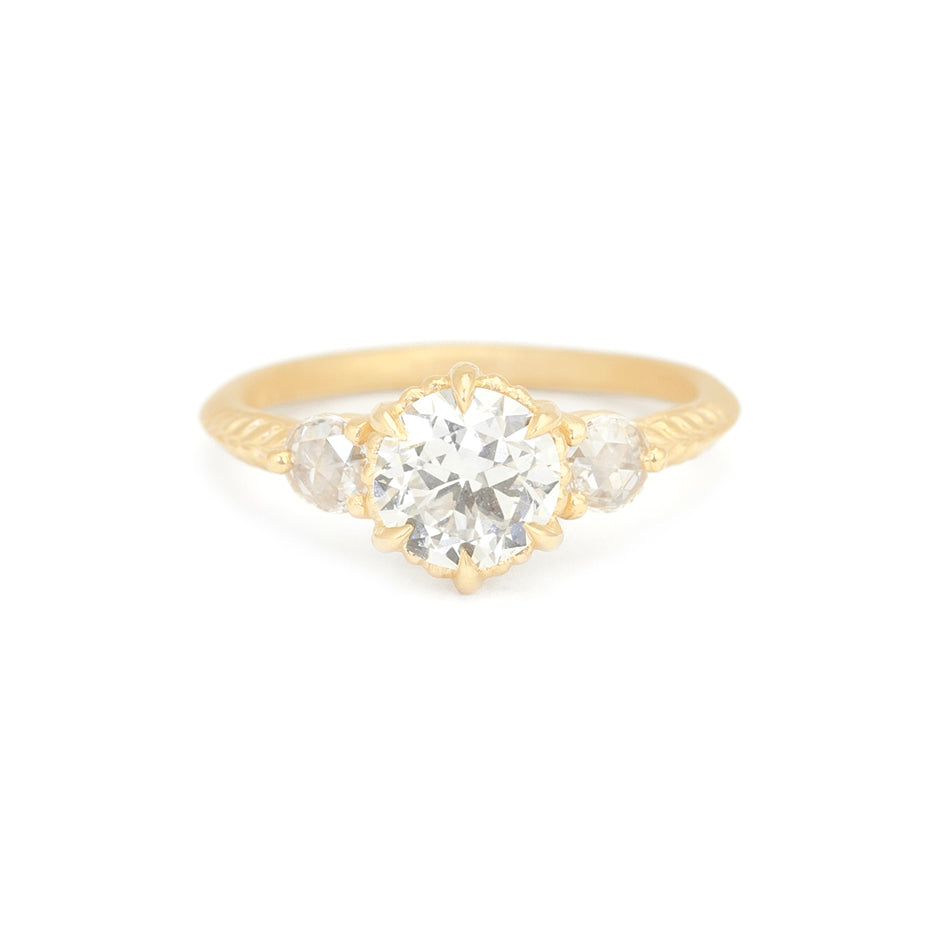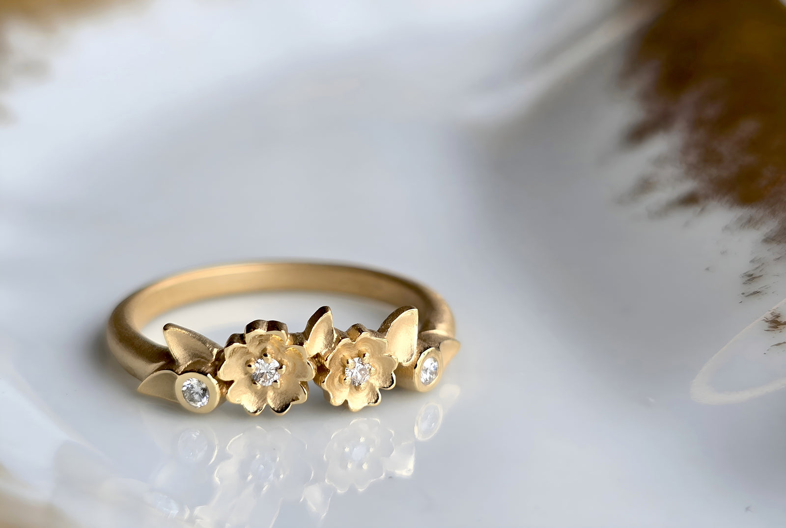 Megan studied apparel design and worked briefly in the fashion industry before a fortuitous introduction to metalsmithing made her jump ship. Off to bench jewelry school she went, and there amongst the fire and grit, she found her life’s passion. Since 2007 she’s been shaping the delicate flowers and sinuous gold ribbons of her dreams into heirloom jewels