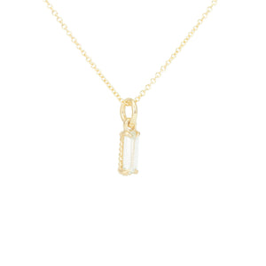 This elongated emerald cut diamond is a symmetrical dream,held in a hand-carved Evergreen beaded setting and cradled with delicately claw tipped prongs. The stone is remarkably modern and sleek, crystal clear and glistening, set inverted with dynamic step faceting creating a dramatic light reflecting peak