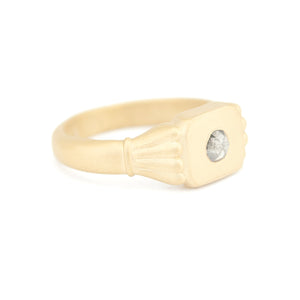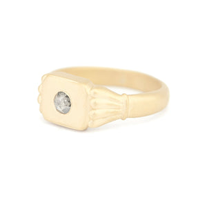 Ask Us AnythingA classic signet style created with our special touch - sculptural yet soft, with a nod to historic architectural lines and the charm of a flush set smoky salt and pepper diamond. The weight of this ring is so pleasing, you'll grow to treasure its feel on your hand.