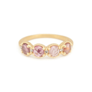 Ask Us AnythingA tonal blend of rose cut pink sapphires - sunset to blush to mauve - bloom in the ultimate celebration band. Twinkly little diamond sparkle makes the colors really pop