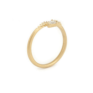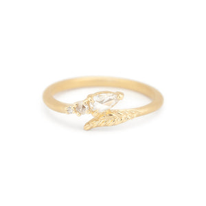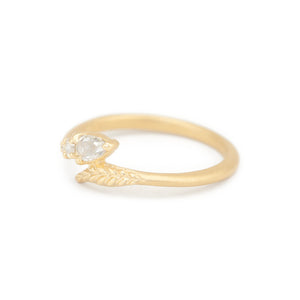 Such a special silhouette, with a delicate curve and hand-carved flourish reminiscent of a sinuous vine or an antique Victorian serpent ring. Rose cut diamonds sparkle in such a special way - soft and dappled, as light reflects off a stream. Unexpectedly feminine-but-cool.