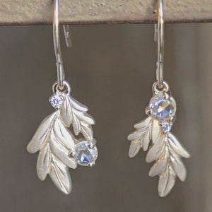 Hand-carved Wood Nymph Faye leaves glisten with the soft sparkle of rose cut diamonds and the effervescent pop of teensy brilliant cut accents.The perfect something special for every day and beyond